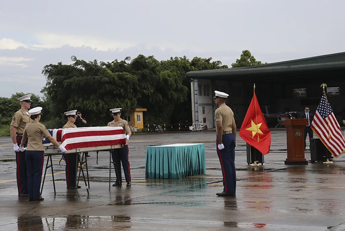 Ngày 9-7, tại sân bay Gia Lâm, Hà Nội, Cơ quan Việt Nam tìm kiếm người mất tích (VNOSMP) đã tiến hành bàn giao một bộ hài cốt quân nhân Mỹ mất tích trong thời gian chiến tranh ở Việt Nam cho phía Mỹ.