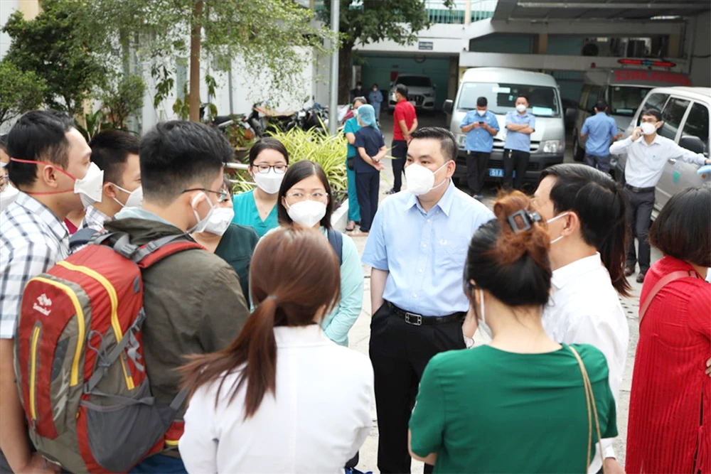 Sau khi được Sở Y tế chỉ định, BV Da liễu TP.HCM đã khởi động lại BV dã chiến số 12, tiếp nhận điều trị bệnh nhân nhiễm COVID-19, đặc biệt là chuẩn bị ứng phó khi có bệnh nhân nhiễm biến chủng Omicron. Trong ảnh: 45 bác sĩ BV Da liễu lên đường nhận nhiệm vụ vào ngày 7-12. Ảnh: BVCC