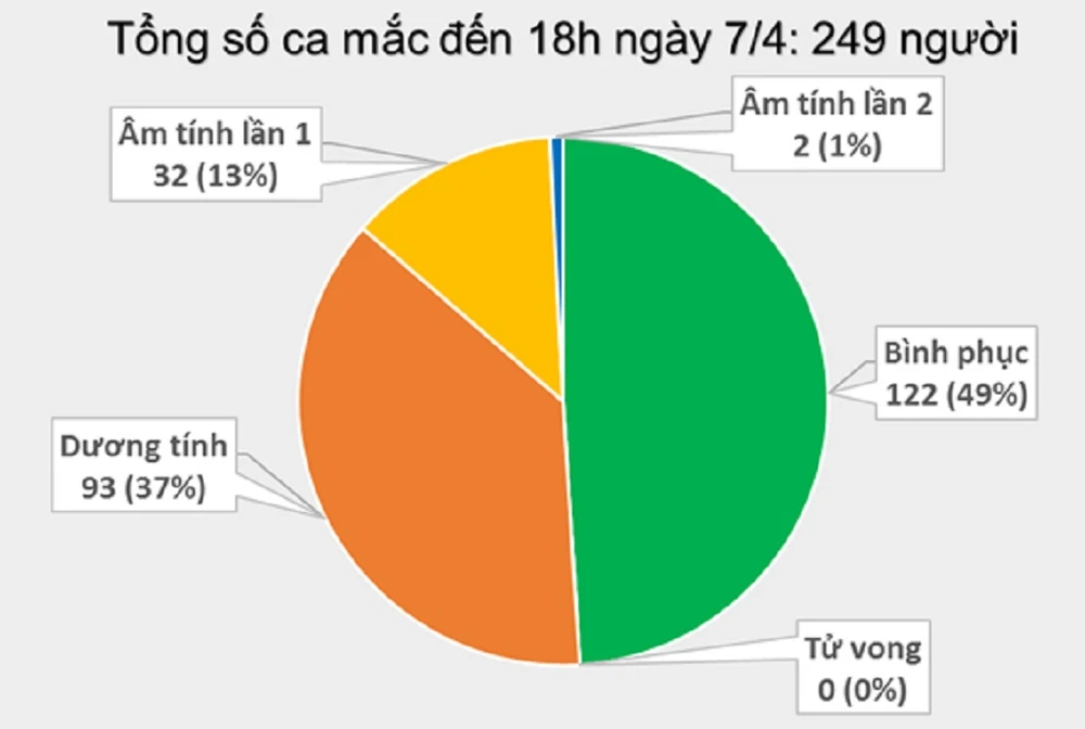 Biểu đồ về tình hình dịch COVID-19 tại Việt Nam đến 18 giờ ngày 7-4. (Nguồn: Bộ Y tế)