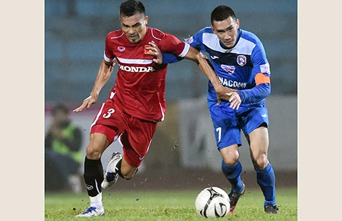 Nhiều khả năng Đình Luật sẽ ra sân trong đội hình chính đá cặp trung vệ cùng Quế Ngọc Hải. Ảnh: QUANG THẮNG