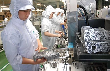 Dây chuyền sản xuất của công ty Nidec Tosok tại khu công nghệ cao TP.HCM. Ảnh: Hữu luận