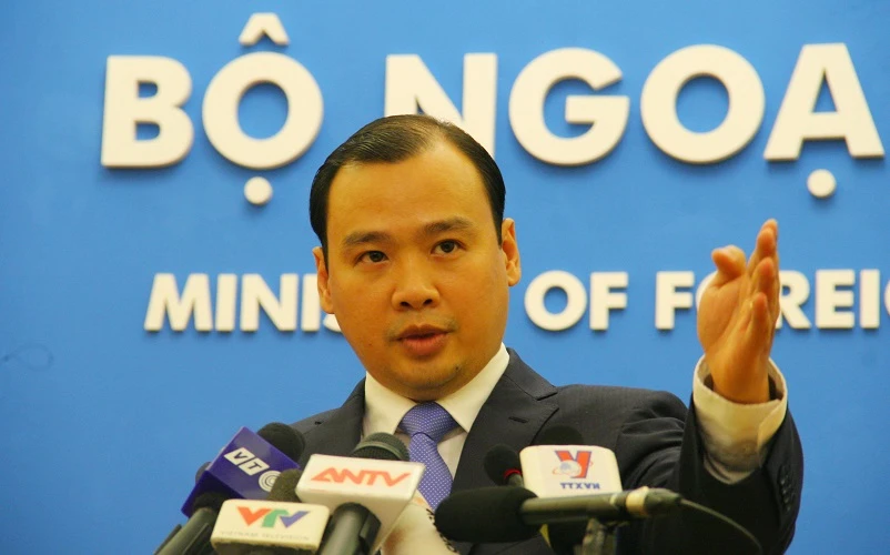 Ông Lê Hải Bình tại buổi họp báo thường kỳ Bộ Ngoại giao ngày 3-7. Ảnh V.THỊNH