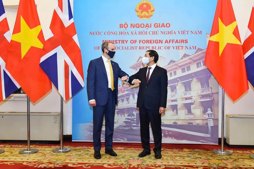 Nhận lời mời của Bộ trưởng Bộ Ngoại giao Bùi Thanh Sơn, Bộ trưởng thứ nhất, Bộ trưởng Ngoại giao và Phát triển Anh Dominic Raab thăm chính thức Việt Nam từ ngày 21 đến 22-6-2021.