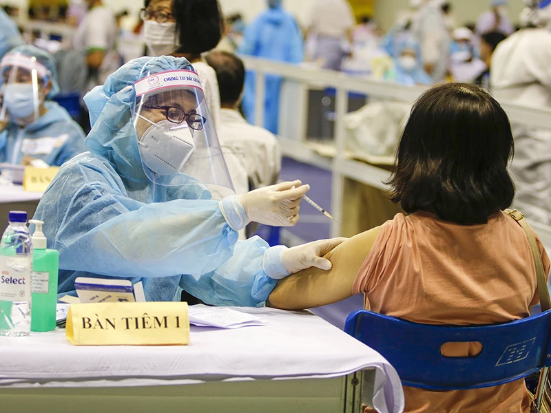 Người dân đi tiêm vaccine tại Nhà thi đấu Phú Thọ, quận 11, TP.HCM