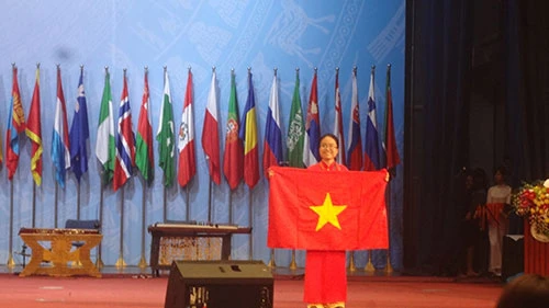 Phạm Ngân Giang (lớp 12 chuyên hóa Trường THPT Chuyên Hà Nội - Amsterdam) đoạt HCV
