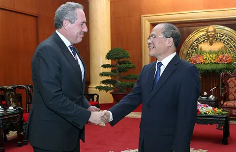 Chủ tịch Quốc hội Nguyễn Sinh Hùng tiếp ngài Michael Froman, đại diện thương mại Hoa Kỳ. Ảnh: TTXVN