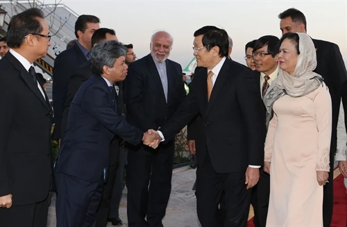 Đại sứ các nước ASEAN đón Chủ tịch nước Trương Tấn Sang tại sân bay quốc tế Mehrabad ở thủ đô Tehran. Ảnh: Nguyễn Khang – TTXVN