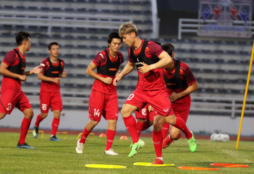 Do các cầu thủ vừa trải qua các trận đấu tại V-League, lại mất khá nhiều thời gian di chuyển sang Thái Lan nên HLV Park Hang-seo chỉ đưa ra khối lượng vận động nhẹ. Các tuyển thủ tỏ ra thoải mái và tràn đầy hứng khởi với các trò chơi vận động, vừa rèn phản xạ vừa giúp tăng sự gắn kết giữa các cầu thủ.