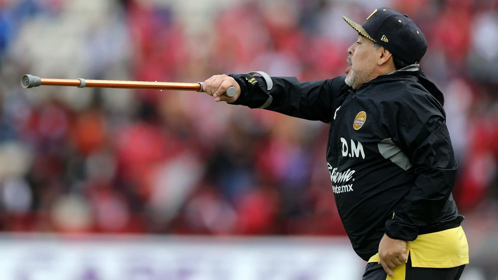 HLV Maradona chỉ đạo trong một trận đấu của CLB Dorados. ẢNH: AP