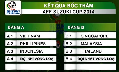 Kết quả bốc thăm chia bảng AFF Cup 2014: