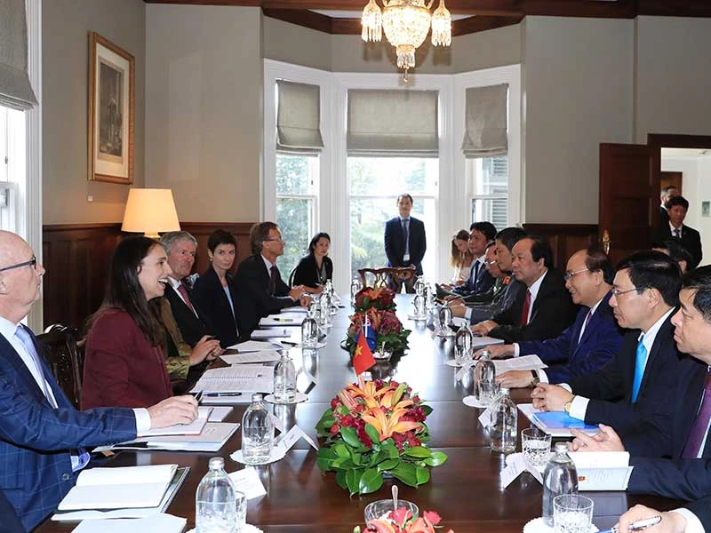 Thủ tướng Nguyễn Xuân Phúc hội đàm với Thủ tướng New Zealand Jacinda Ardern. Ảnh: TTXVN