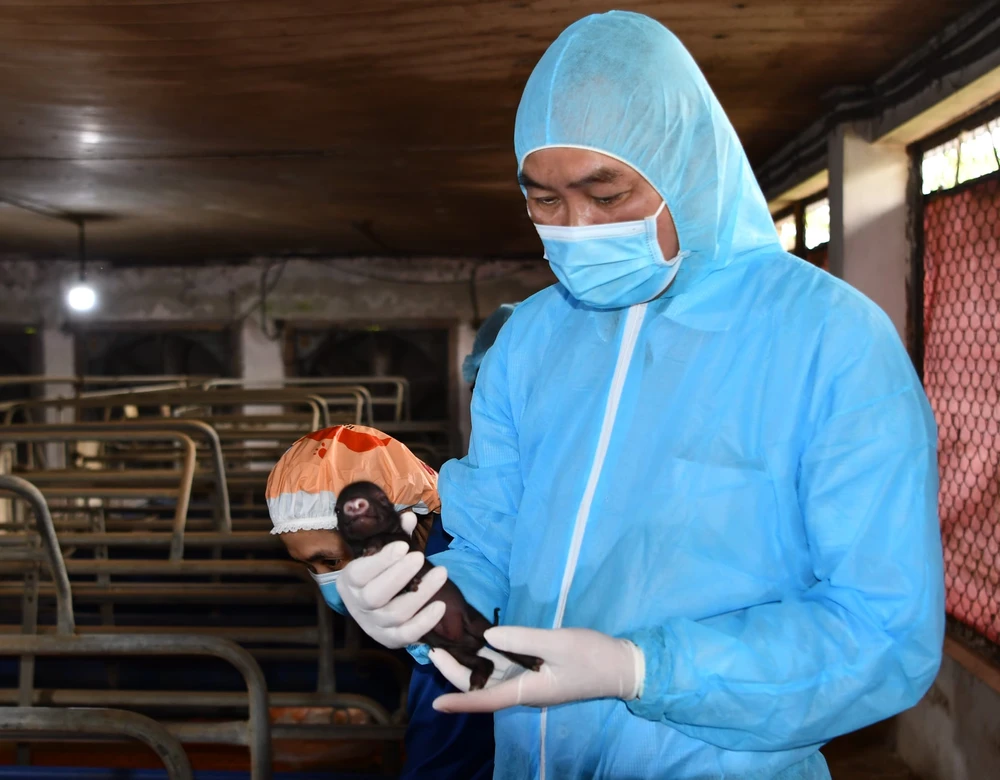 Lần đầu tiên tại Việt Nam nhân bản thành công heo Ỉ từ tế bào soma mô tai. Ảnh: VG