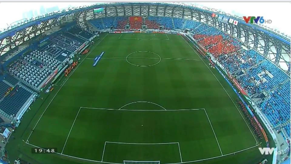 Trọng tài Mohammed Abdulla Hassan thổi còi kết thúc hiệp 1, hai đội rời sân tạm nghỉ với kết quả hòa 0-0. Đội tuyển Việt Nam đã chơi một hiệp đấu rất hay trước Nhật Bản. Cả hai đội đều có những cơ hội rất rõ ràng nhưng đều không tận dụng thành công.