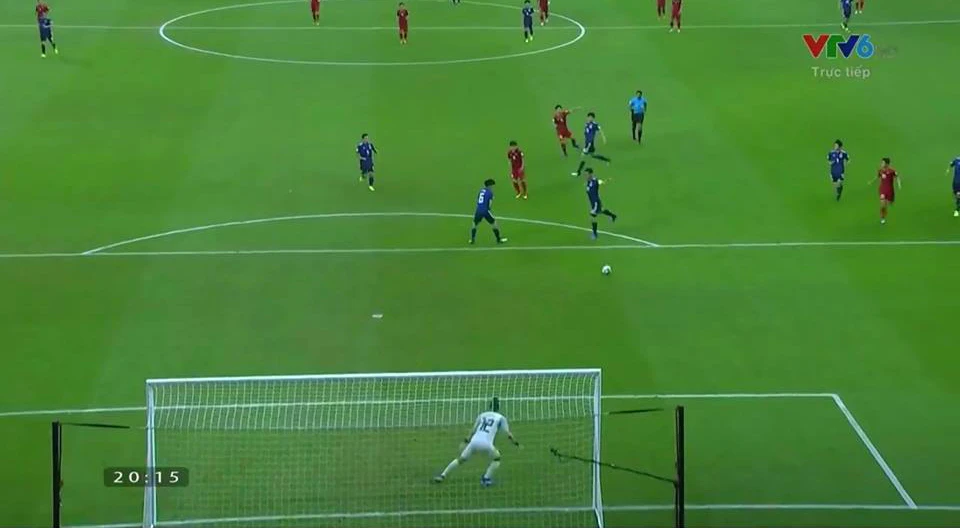 Phút 16, Công Phượng đưa bóng vào lưới Nhật Bản nhưng trước đó Công Phượng đã rơi vào thế việt vị.