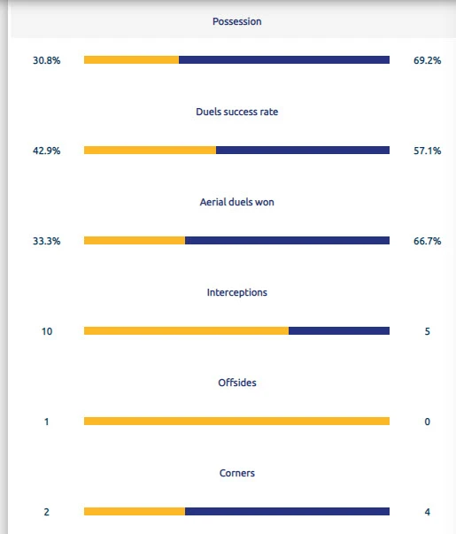 Thống kê kỹ thuật trong hiệp 1 trận đấu.