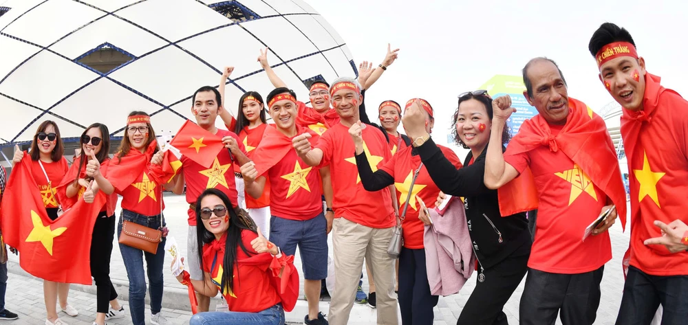 CĐV Việt Nam bên ngoài sân Al Maktoum.