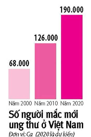 GS Hùng cho biết mỗi năm Việt Nam phát hiện mới khoảng 160.000 người mắc bệnh ung thư và khoảng 115.000 người tử vong vì căn bệnh này. Các tỉnh, TP có số người mắc ung thư nhiều nhất là Hà Nội, TP.HCM, Thái Nguyên, Hải Phòng, Huế, Cần Thơ.