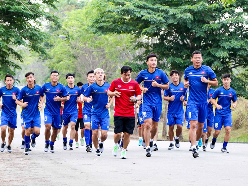 Olympic Việt Nam sung sức trước giờ bóng lăn. Ảnh: HUY PHẠM