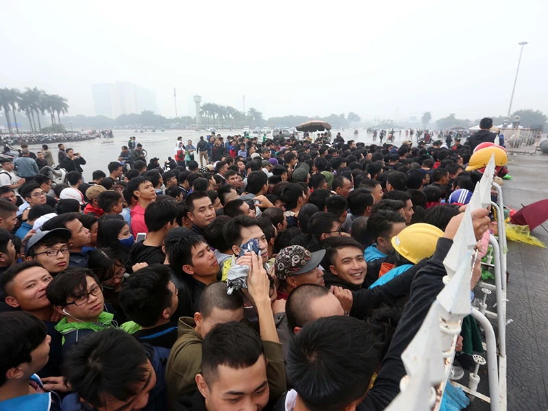 Cảnh xếp hàng xô đẩy và tiêu cực như thế này sẽ không còn từ trận bán kết. Tuy nhiên, điều VFF lo nhất là “sập mạng” dù đã lên đủ các phương án và chỉ còn chờ thông báo ngày bán vé. Ảnh: NGỌC DUNG