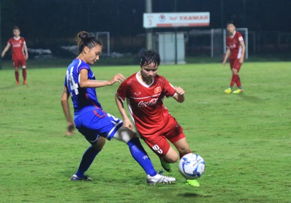 Tuyển nữ Việt Nam (phải) vừa có hai trận giao hữu thắng Đài Loan.