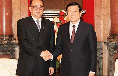 Chủ tịch nước Trương Tấn Sang tiếp Bộ trưởng Ngoại giao CHDCND Triều Tiên Ri Su Yong. Ảnh: TTXVN