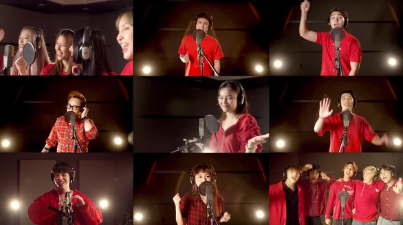 Tất cả đều mặc trang phục áo màu đỏ, thể hiện trọn vẹn cảm xúc và nhiệt huyết qua từng câu hát.