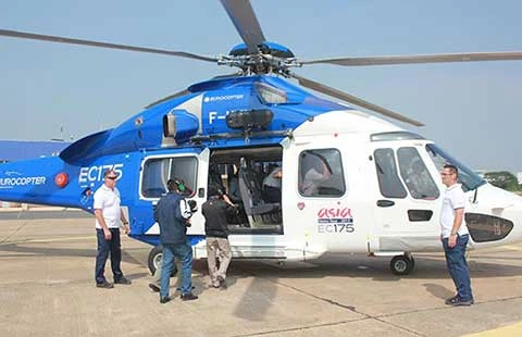 Trực thăng chuyên dùng EC175 chở bảy người phù hợp cho lĩnh vực khai thác dầu khí, tìm kiếm cứu nạn, dịch vụ y tế khẩn cấp, vận chuyển khách VIP đang trình diễn ở sân bay Vũng Tàu. Ảnh: Internet