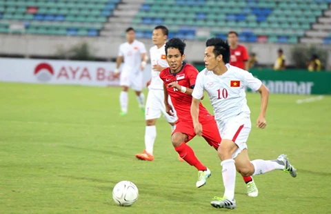 HLV Hữu Thắng tung ra sân đội hình y hệt như đã thắng trong trận giao hữu trước Syria khi để Văn Toàn ra sân từ đầu. Trong khi đó, Singapore vẫn là thành phần như đã từng tra tấn trước chủ nhà Myanmar.