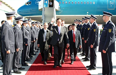 Lễ đón Thủ tướng Nguyễn Tấn Dũng tại sân bay Stuttgart, bang Baden- Wurttemberg. Ảnh: TTXVN