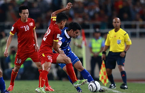 Chủ sân Mỹ Đình có đến ba cầu thủ quen đá tiền đạo gồm Công Vinh, Văn Quyết và Mạc Hồng Quân nhưng với yêu cầu hỗ trợ phòng ngự lẫn tâm lý sợ thua khiến họ không có nhiều cơ hội tiếp cận cầu môn Thái Lan. Trong khi đó, các học trò HLV Kiatisak vẫn đủng đỉnh và khôn ngoan nhờ đẳng cấp cao hơn nên rất tỉnh táo với các miếng đánh đa dạng của mình.