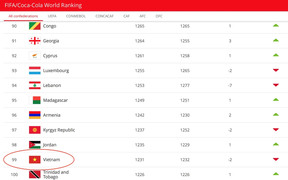 Việt Nam và Thái Lan cùng tăng bậc xếp hạng FIFA