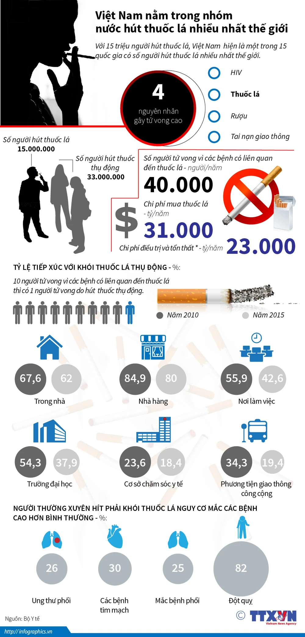 31-5 hằng năm được Tổ chức Y tế Thế giới WHO chọn là ngày Thế giới không thuốc lá (World No Tobacco Day). Mục đích của WHO là khuyến khích 24 tiếng không có khói thuốc lá trên toàn cầu. Với 15 triệu người hút thuốc lá, Việt Nam hiện là một trong 15 quốc gia có số người hút thuốc lá nhiều nhất thế giới.