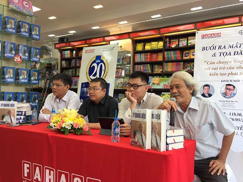 Các khách mời tham gia buổi tọa đàm “Câu chuyện Singapore với vai trò của nhà nước kiến tạo phát triển” nhân ra mắt bộ Hồi ký Lý Quang Diệu vào sáng 6-5 tại TP.HCM.