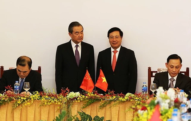 Phó Thủ tướng Phạm Bình Minh và Ủy viên Quốc vụ Vương Nghị chứng kiến lễ ký “Biên bản phiên họp lần thứ 11 Ủy ban Chỉ đạo hợp tác song phương Việt Nam-Trung Quốc” ngày 16-9.