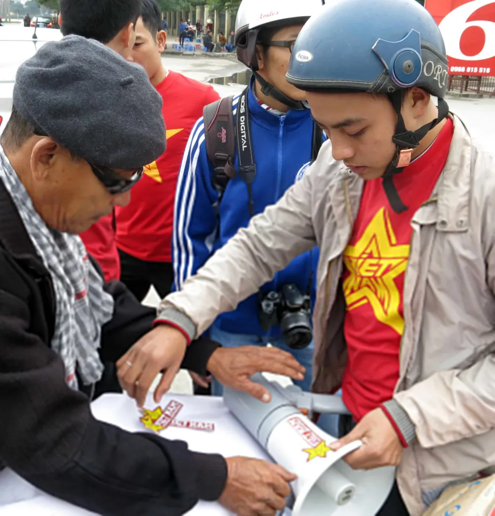 Mỗi người một việc, từ Hội Cổ động viên bóng đá Việt Nam (VFS) tổ chức buổi diễu hành, các sinh viên tranh thủ bán áo đội tuyển, băng rôn kiếm tiền trang trải học phí, dân “phe” vé tranh thủ làm ăn đến những người hâm mộ… đang rất háo hức chuẩn bị cho giờ khai cuộc.