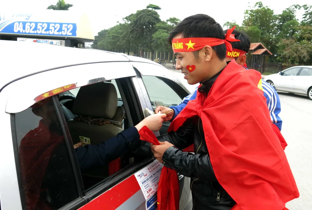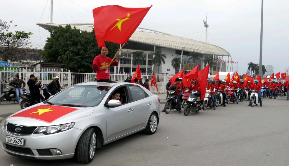 Hội Cổ động viên bóng đá Việt Nam tổ chức diễu hành qua các con phố chính, để tiếp sức cho các tuyển thủ trước trận đấu quyết định chiếc vé vào chung kết.