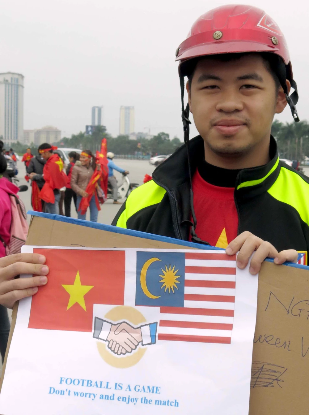 "Đừng quá lo lắng, hãy thưởng thức trận đấu” là thông điệp hữu nghị các bạn trẻ Việt Nam gửi gắm đến các cổ động viên tuyển Malaysia.