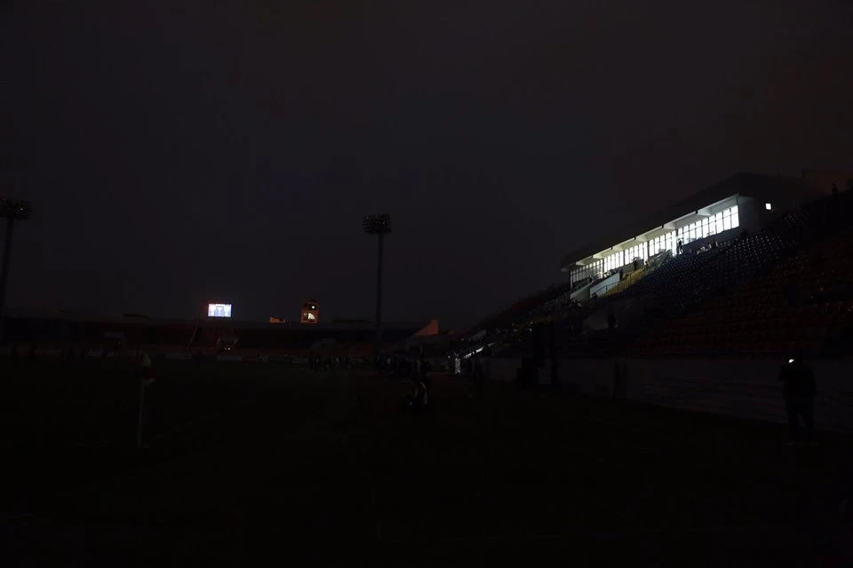 Trời tối rất nhanh ở Quảng Ninh và khi có điện trở lại, trận đấu chỉ diễn ra 1 phút thì tiếp tục cúp điện.