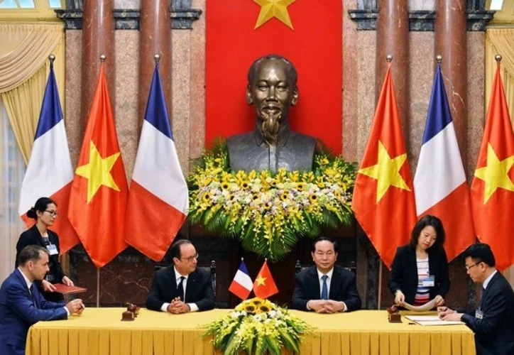 Sau hội đàm, Chủ tịch nước Trần Đại Quang và Tổng thống François Hollande đã chứng kiến lễ ký kết, trao đổi các văn kiện, thỏa thuận hợp tác giữa hai nước trên các lĩnh vực tương trợ tư pháp, dẫn độ, hợp tác tư pháp, đào tạo cán bộ, nông nghiệp, giảng dạy tiếng Pháp, ứng phó với biến đổi khí hậu, cung cấp máy bay chở khách Airbus, viễn thông, vệ tinh, phát triển cơ sở hạ tầng… Chủ tịch nước và tổng thống Pháp cũng đã phát biểu với báo chí và trả lời câu hỏi của các phóng viên.