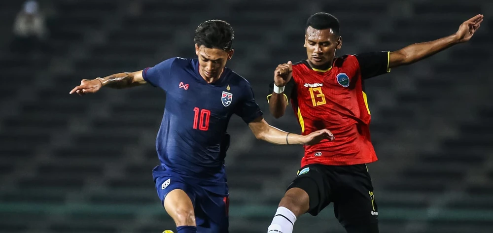 Các tuyển thủ trẻ Thái Lan (trái) cũng rất chật vật vượt qua Đông Timor.