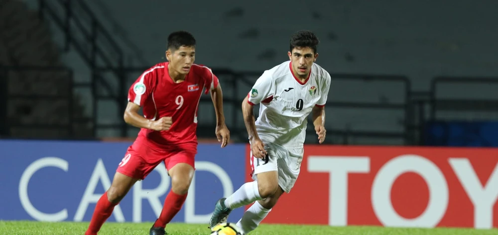Triều Tiên (đỏ) chia điểm với Jordan qua trận hòa 2-2