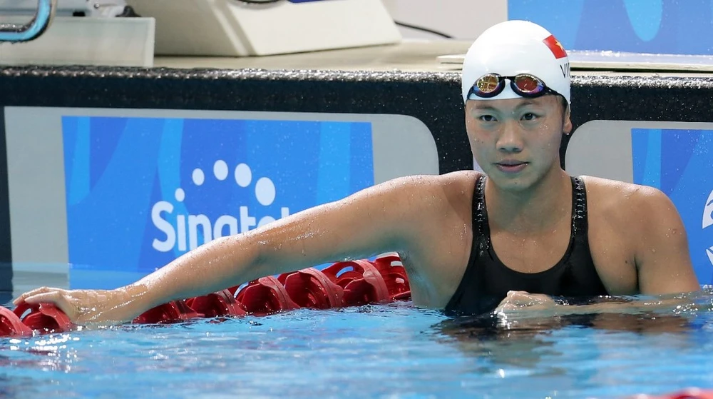 Ánh Viên thất bại cự ly 200 m bướm nhưng lấy vàng 100 m ngửa. Ảnh: QUANG THẮNG