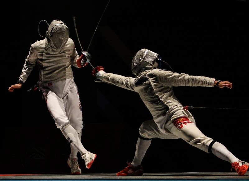 Nhát kiếm quyết định của kiếm thủ Vũ Thành An. Ảnh: CMQ