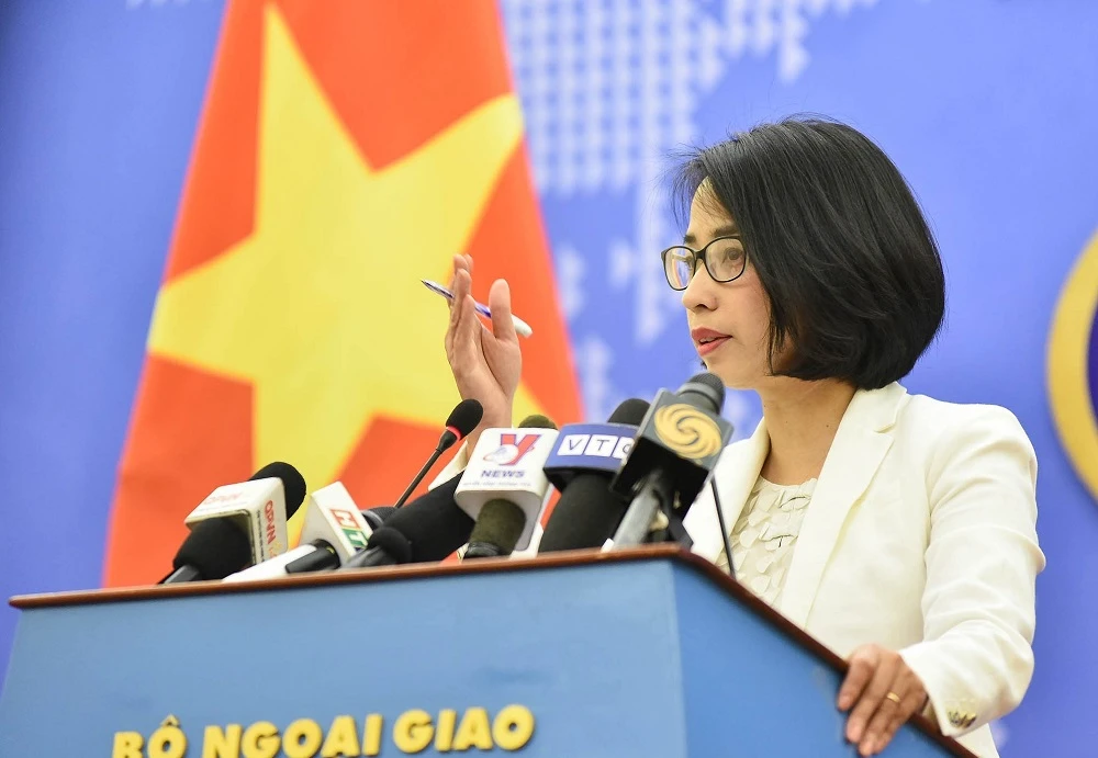 Liên quan đến thông tin Trung Quốc quân sự hóa hoàn toàn một số đảo ở Biển Đông, Phó Phát ngôn Phạm Thu Hằng khẳng định Việt Nam có đầy đủ căn cứ pháp lý và bằng chứng lịch sử để khẳng định chủ quyền đối với quần đảo Hoàng Sa và quần đảo Trường Sa, phù hợp với luật pháp quốc tế, cũng như chủ quyền, quyền chủ quyền, quyền tài phán đối với các vùng biển phù hợp với luật pháp quốc tế và UNCLOS 1982.