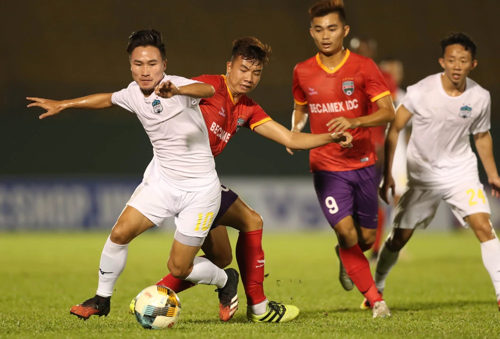 B. Bình Dương (áo đỏ) trong trận thắng HA Gia Lai 3-0. Ảnh: BTC