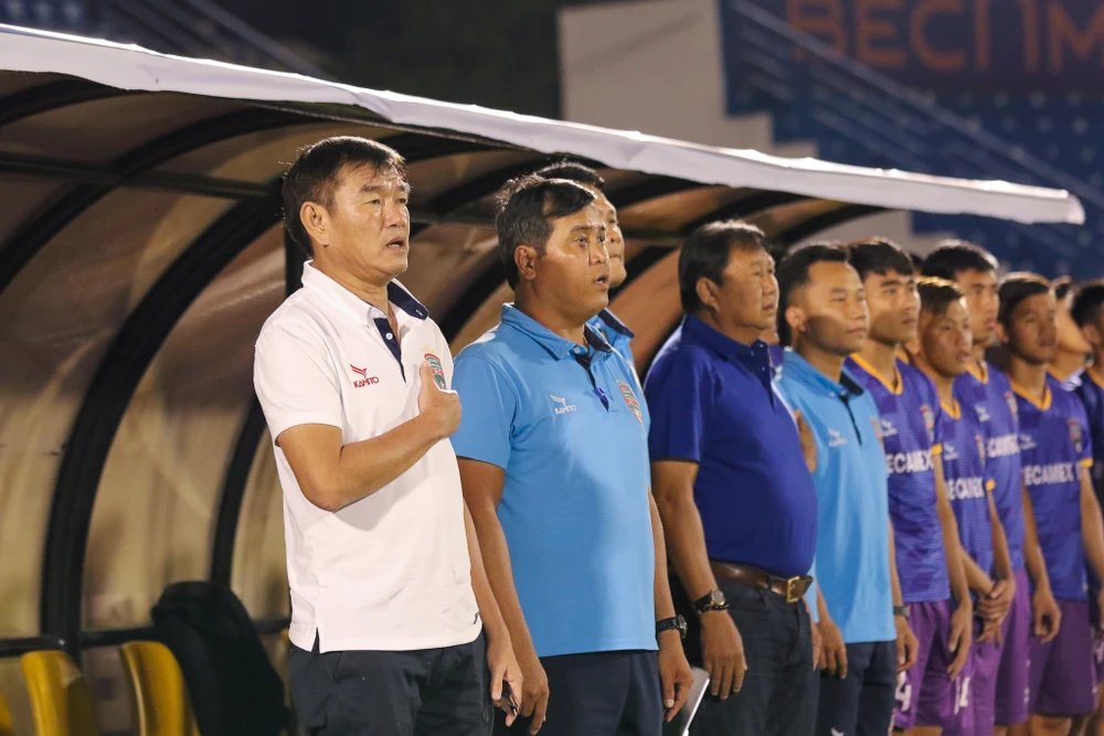 HLV Phan Thanh Hùng vượt qua được Khánh Hòa, sẽ đá chung kết giải với SHB Đà Nẵng. Ảnh: BTC