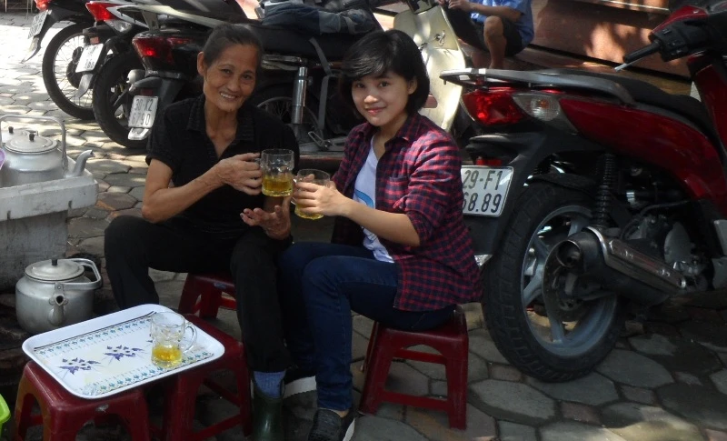 Khi tôi ngỏ ý muốn chụp một bức ảnh cô cùng con gái, cô lắc đầu: “Thôi cháu đừng chụp. Nhìn con bé như thế người ta lại nghĩ khác. Cháu cứ viết để những người lao động nghèo nếu có lỡ qua đây thì biết vào uống nước chè miễn phí là được rồi. Cốc nước chẳng đáng là bao nhưng nhìn những người bốc vác, lao công chắt chiu từng đồng mà có mấy ngụm nước có khi còn bị chặt chém cô xót lắm”.