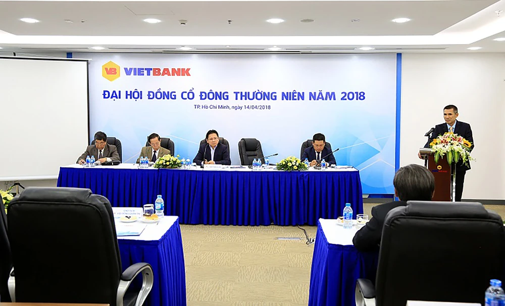 Ông Nguyễn Thanh Nhung, TGĐ VietBank trình bày báo cáo trước đại hội