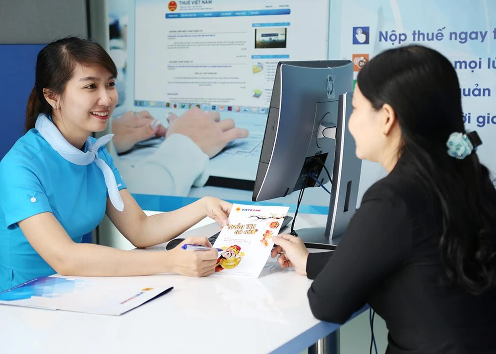 Khách hàng đang giao dịch tại quầy của Vietbank.