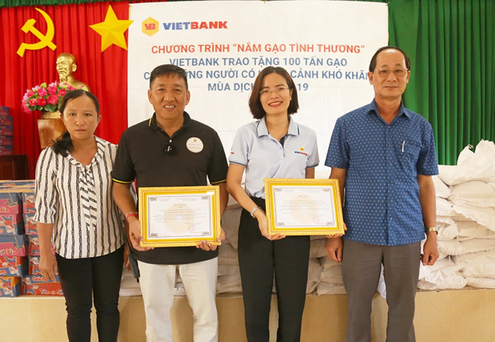 Hơn 2 tháng, từ tháng 5 đến tháng 6 năm 2020, Ngân hàng TMCP Việt Nam Thương Tín (Vietbank) tổ chức chương trình “Nắm gạo tình thương”, trao tặng 100 tấn gạo đến những hộ gia đình có hoàn cảnh khó khăn tại các tỉnh thành Bến Tre, Vĩnh Long, Trà Vinh, Long An, An Giang, Bình Thuận, KonTum, Quãng Ngãi…